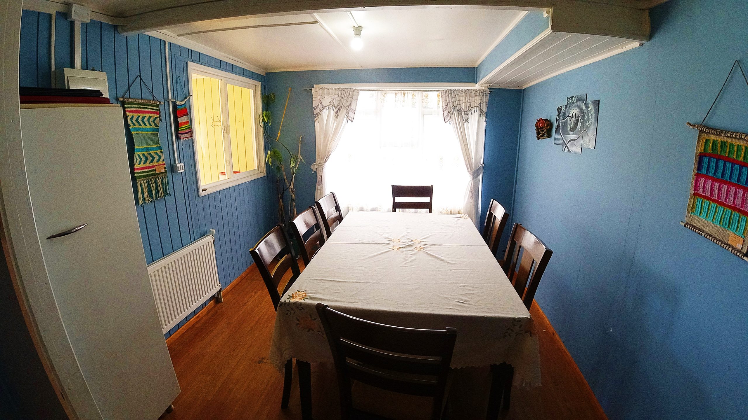 Es un hostal cómodo, con variadas habitaciones, múltiples baños y con amplios espacios comunes.